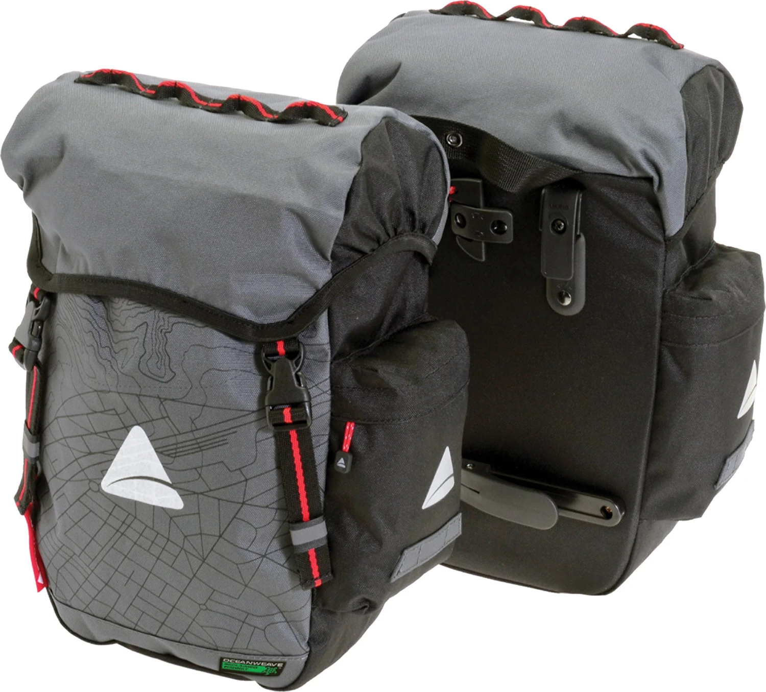 - OCEANWEAVE® 600D reclaimed fishnet polyester with waterproof polyurethane coating.